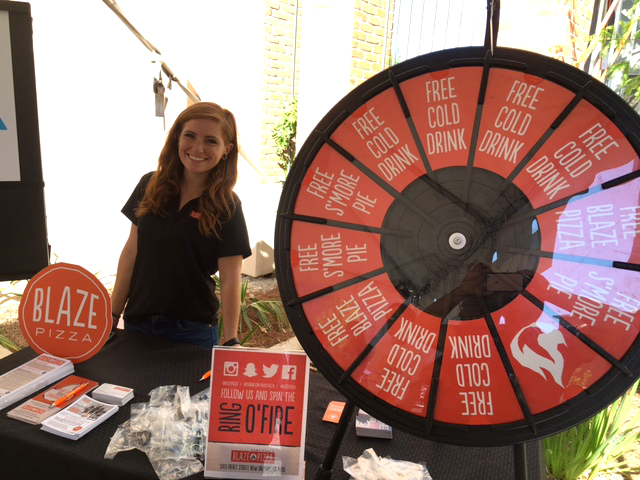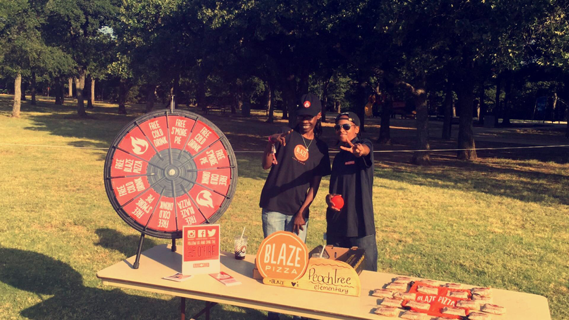 Blaze Pizza in Arlington participated in the Peach Tree Carnival. The street team was able to set up a table that allowed the children to spin and win prizes from the Wheel of Fire as well as sampled out s’more pies.